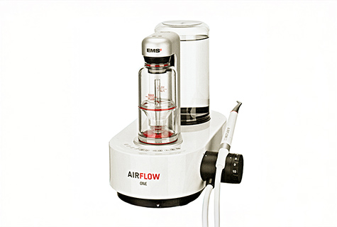 微粒子パウダーをジェット水流で吹き付けて、歯の表面に付着したバイオフィルムや汚れを除去します。歯みがきではケアが難しい箇所もアプローチします。