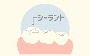 奥歯の溝は歯垢などの汚れの溜まりやすく、ブラッシング時のみがき残しが多い場所です。そのため、フッ素を配合した樹脂で予め奥歯の溝を埋めるシーラントを行い、むし歯予防効果を高めます。主にお子さんを対象とした予防処置であり、歯を削ったり痛みが生じたりすることはありません。